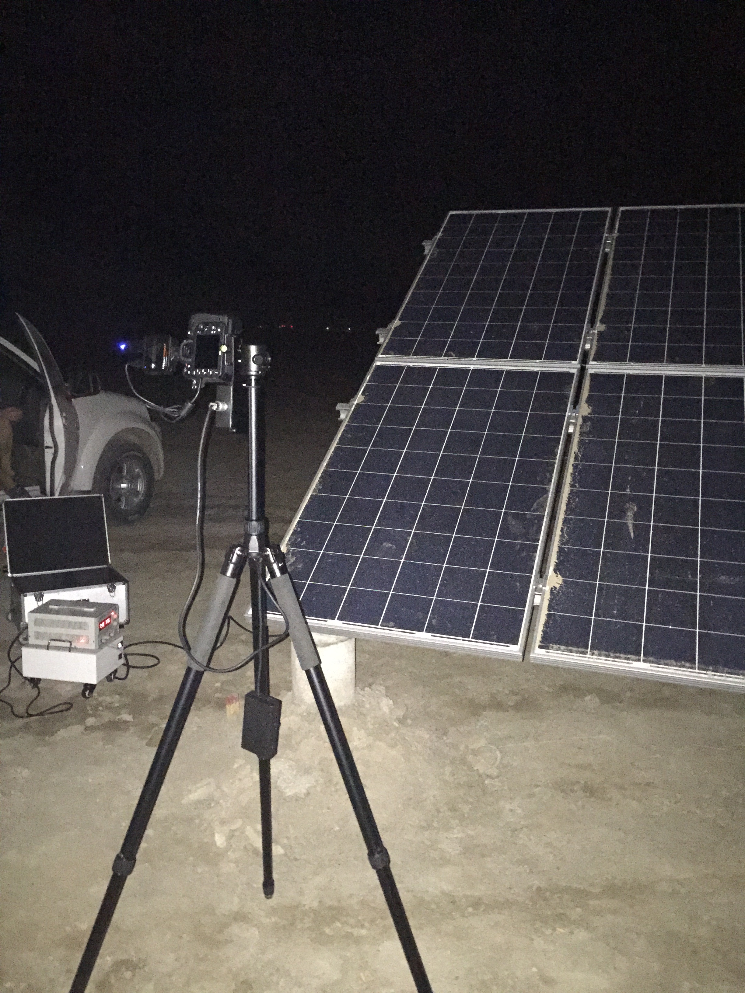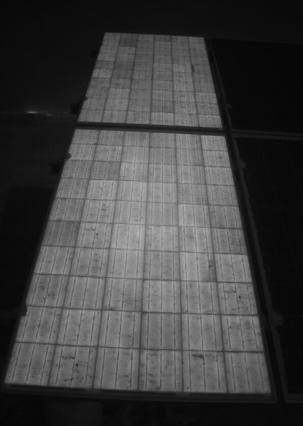 中電投新疆項目現場30MW光伏電站,支架上組件安裝后檢測,現場完成培訓及相關工作,使用我公司便攜式EL檢測儀 LX-Z200標配設備 搭配0~100V穩壓電源檢測,同時檢測支架上上下雙組件,其設備具備的相機自動對焦功能,無線傳輸操作功能,全景視野激光校準功能充分得到現場工程師認可。