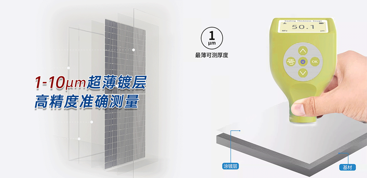 萊科斯H607采用獨(dú)有數(shù)字線性技術(shù),準(zhǔn)確測(cè)量10微米以下超薄涂層厚度,不僅可以識(shí)別金屬等材料鍍層厚度,更是可以輕松應(yīng)對(duì)各種材質(zhì)光伏板背板的測(cè)量。